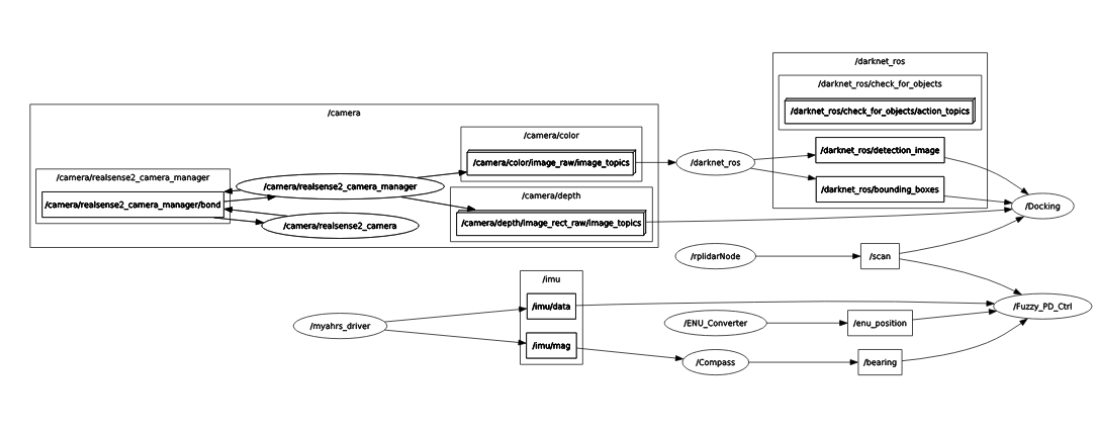 예를 들면 GPS에서 정보를 내보내는 노드 하나, 그 정보를 받아들여 최단 경로를 계산하고 다음 이동할 위치를 내보내는 노드 하나, 또 그 정보를 받아 바퀴를 얼만큼 움직일지 알려주는 노드 하나인 식입니다.