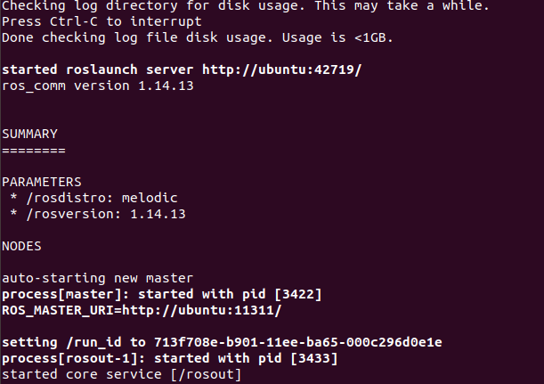 여기까지 완료한 뒤, 재부팅을 시키고 터미널 창에 roscore를 쳐서 제대로 실행이 된다면 ROS 설치가 제대로 완료된 것이다.